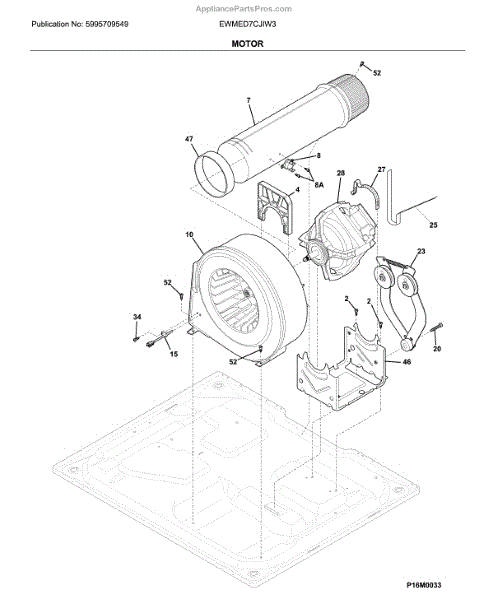 This dryer blower moves air through the drum, lint filter, and exhaust so laundry dries efficiently. Replacing a damaged blower restores proper airflow and helps prevent long dry times and overheating issues.