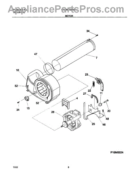 The Motor is an OEM part for Frigidaire dryers. It is responsible for driving the drum rotation in the dryer, allowing for the tumbling and drying of clothes. It converts electrical energy into mechanical motion, providing the necessary power to spin the drum and circulate air for efficient drying.
