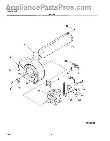 The Motor is an OEM part for Frigidaire dryers. It is responsible for driving the drum rotation in the dryer, allowing for the tumbling and drying of clothes. It converts electrical energy into mechanical motion, providing the necessary power to spin the drum and circulate air for efficient drying.