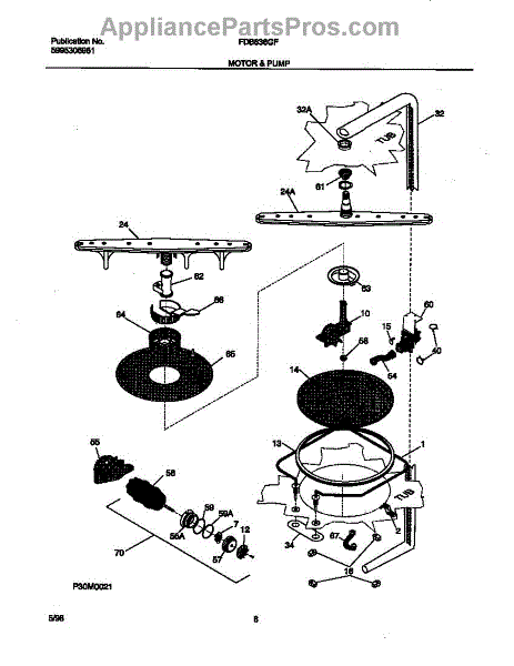 This sump gasket seals the connection between the dishwasher tub and the sump/pump assembly. Replacing a flattened or cracked gasket restores a watertight barrier to help stop leaks from the base and protect floors and cabinetry.
