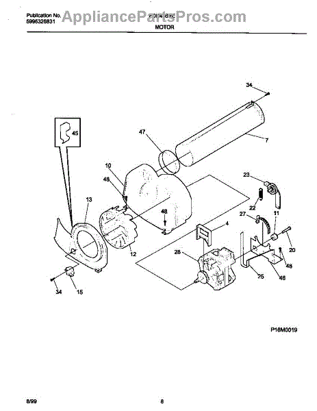 The Motor is an OEM part for Frigidaire dryers. It is responsible for driving the drum rotation in the dryer, allowing for the tumbling and drying of clothes. It converts electrical energy into mechanical motion, providing the necessary power to spin the drum and circulate air for efficient drying.