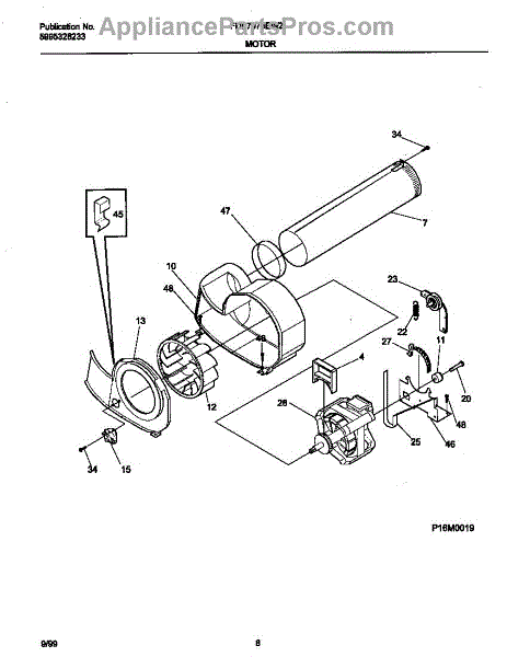 The Motor is an OEM part for Frigidaire dryers. It is responsible for driving the drum rotation in the dryer, allowing for the tumbling and drying of clothes. It converts electrical energy into mechanical motion, providing the necessary power to spin the drum and circulate air for efficient drying.