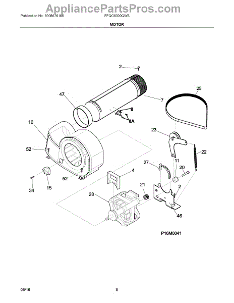 The Motor, Main w/ Pulley is an OEM replacement part for Frigidaire electric dryers. As the primary mechanical component, the motor works with the drum pulley to spin the dryer tumbler and circulate air during the drying cycle.