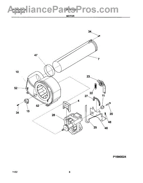 The Motor is an OEM part for Frigidaire dryers. It is responsible for driving the drum rotation in the dryer, allowing for the tumbling and drying of clothes. It converts electrical energy into mechanical motion, providing the necessary power to spin the drum and circulate air for efficient drying.