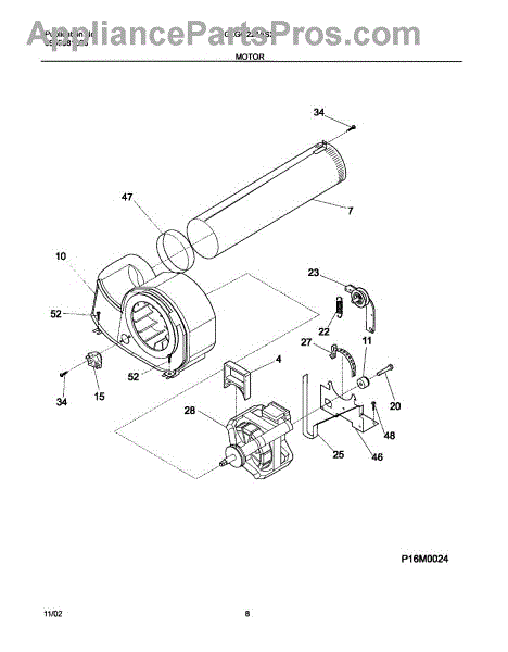The Motor is an OEM part for Frigidaire dryers. It is responsible for driving the drum rotation in the dryer, allowing for the tumbling and drying of clothes. It converts electrical energy into mechanical motion, providing the necessary power to spin the drum and circulate air for efficient drying.