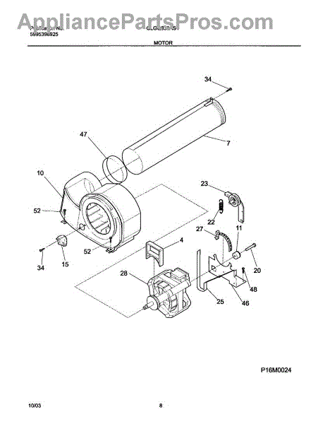 The Motor is an OEM part for Frigidaire dryers. It is responsible for driving the drum rotation in the dryer, allowing for the tumbling and drying of clothes. It converts electrical energy into mechanical motion, providing the necessary power to spin the drum and circulate air for efficient drying.