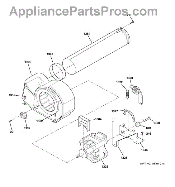 This is a motor and pulley intended for use with dryers. The purpose of this component is to rotate the dryer belt. This spins the drum where the clothes are contained. The part includes the pulley where the dryer belt attaches. The motor and pulley can be damaged or become worn out. This may cause a humming noise, a stiff motor, a rotating motor, or other issues. If this is the case, the component will need to be replaced.To replace this part, make sure the dryer is unplugged from the wall. A set of tools and work gloves will be useful for the process. Take the top and front panels off the dryer to gain access to the drum. Remove the drum, take off the motor clamps, and loosen the blower wheel. Remove the back panel and blower wheel before taking out the motor and pulley and replacing them. Reassemble the appliance before use.The motor and pulley is sold on an individual basis. It is an authentic OEM replacement part that is directly sourced from the manufacturer. This component is made to be used with dryers created by Hotpoint and General Electric.
