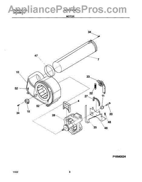 The Motor is an OEM part for Frigidaire dryers. It is responsible for driving the drum rotation in the dryer, allowing for the tumbling and drying of clothes. It converts electrical energy into mechanical motion, providing the necessary power to spin the drum and circulate air for efficient drying.