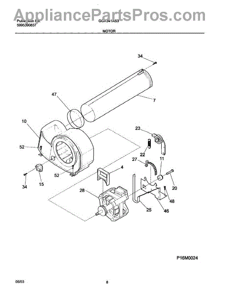 The Motor is an OEM part for Frigidaire dryers. It is responsible for driving the drum rotation in the dryer, allowing for the tumbling and drying of clothes. It converts electrical energy into mechanical motion, providing the necessary power to spin the drum and circulate air for efficient drying.