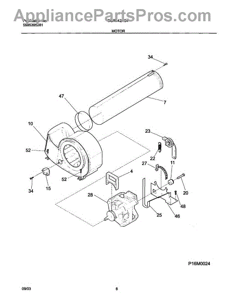 The Motor is an OEM part for Frigidaire dryers. It is responsible for driving the drum rotation in the dryer, allowing for the tumbling and drying of clothes. It converts electrical energy into mechanical motion, providing the necessary power to spin the drum and circulate air for efficient drying.