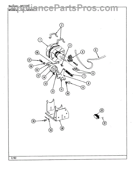 This is the main drive motor that powers the appliance's drive system. A failing motor can cause the unit to stop agitating or spinning, run intermittently, hum without movement, or trip the overload.