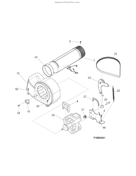 Secures the fan housing to its mounting points. Replace if the clip is broken, missing, or worn to eliminate rattles and prevent air leaks in your dryer.