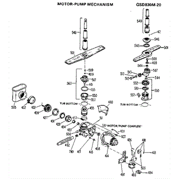 Parts for Ge GSD900L-20WA: Motor-Pump Assembly Parts