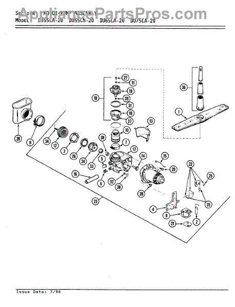 Parts for Magic Chef DU75CA-20: 03 - Motor & Pump Assembly Parts
