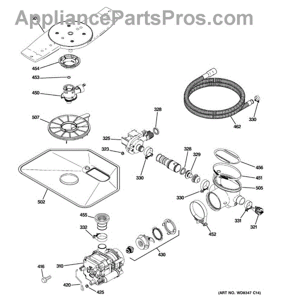 The Pump and Motor Assembly is an OEM replacement part for GE dishwashers. It works to circulate water throughout wash and rinse cycles. The motor spins the integrated pump impeller to draw fresh water into the dishwasher and drain used water. Causes of a bad pump and motor assembly can include mineral buildup on pump parts inhibiting water flow, worn motor windings reducing efficiency, or damage from freezing temperatures. Symptoms of a bad pump and motor assembly include: