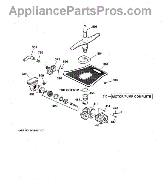 This kit is used to repair a leaking pump on GE made dishwashers. For a complete pump/motor assembly get WD26X10013.