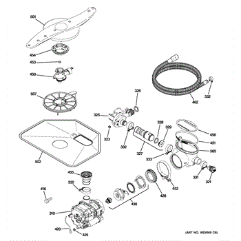 The Pump and Motor Assembly is an OEM replacement part for GE dishwashers. It works to circulate water throughout wash and rinse cycles. The motor spins the integrated pump impeller to draw fresh water into the dishwasher and drain used water. Causes of a bad pump and motor assembly can include mineral buildup on pump parts inhibiting water flow, worn motor windings reducing efficiency, or damage from freezing temperatures. Symptoms of a bad pump and motor assembly include: