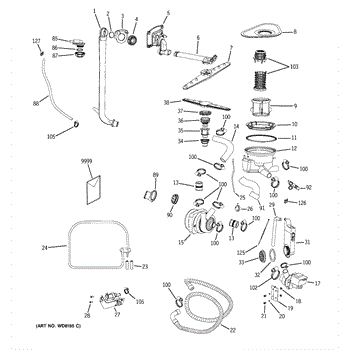 The Upper Spray Arm Assembly is an OEM part for GE dishwashers. This part sprays water throughout the upper section of the dishwasher, ensuring that all dishes are thoroughly cleaned during the wash cycle. The spray arm rotates to distribute water evenly, reaching every corner of the upper rack.