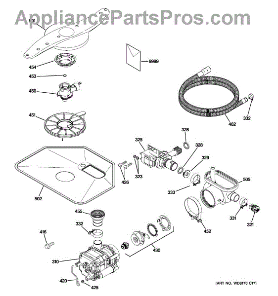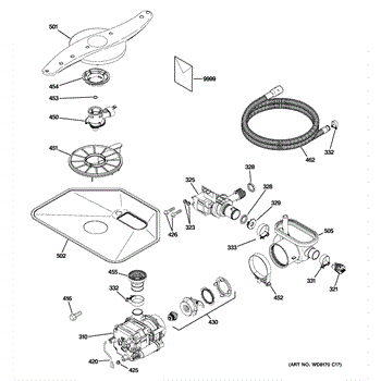 The Pump and Motor Assembly is an OEM replacement part for GE dishwashers. It works to circulate water throughout wash and rinse cycles. The motor spins the integrated pump impeller to draw fresh water into the dishwasher and drain used water. Causes of a bad pump and motor assembly can include mineral buildup on pump parts inhibiting water flow, worn motor windings reducing efficiency, or damage from freezing temperatures. Symptoms of a bad pump and motor assembly include: