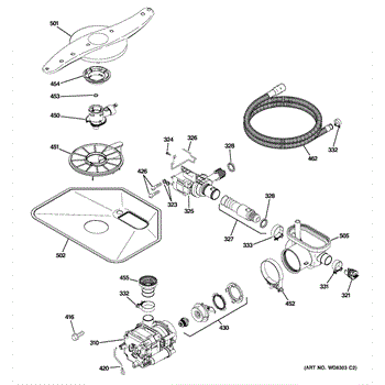 The Pump and Motor Assembly is an OEM replacement part for GE dishwashers. It works to circulate water throughout wash and rinse cycles. The motor spins the integrated pump impeller to draw fresh water into the dishwasher and drain used water. Causes of a bad pump and motor assembly can include mineral buildup on pump parts inhibiting water flow, worn motor windings reducing efficiency, or damage from freezing temperatures. Symptoms of a bad pump and motor assembly include: