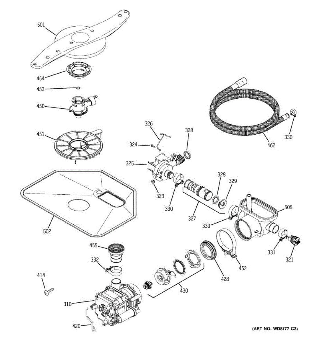 The Check Valve and Hose Assembly is an OEM part for GE dishwashers. This part prevents the backflow of water into the dishwasher, ensuring proper drainage and protecting the appliance from potential water damage.