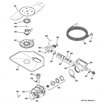 The Pump and Motor Assembly is an OEM replacement part for GE dishwashers. It works to circulate water throughout wash and rinse cycles. The motor spins the integrated pump impeller to draw fresh water into the dishwasher and drain used water. Causes of a bad pump and motor assembly can include mineral buildup on pump parts inhibiting water flow, worn motor windings reducing efficiency, or damage from freezing temperatures. Symptoms of a bad pump and motor assembly include: