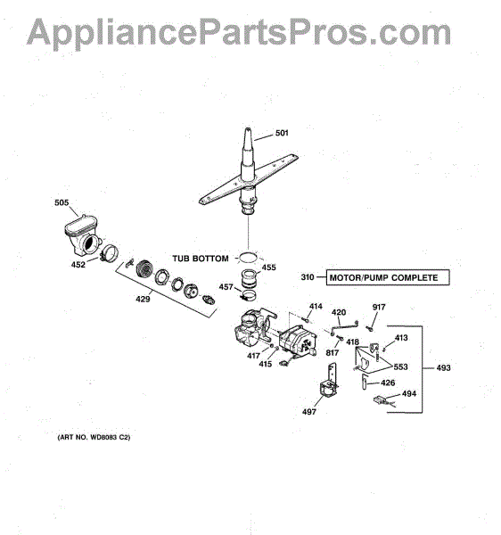 The Lower Spray Arm is an OEM component compatible with GE dishwashers.The spray arm is responsible for distributing water throughout the dishwasher and cleaning dishes. Causes involve mineral buildup obstructing water flow over time, or flexible arm components cracking under pressure. Symptoms of a faulty lower spray arm include:
