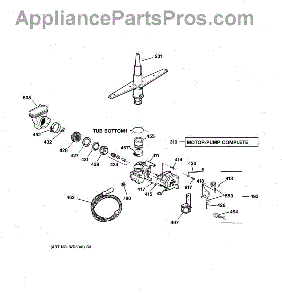 This kit is used to repair a leaking pump on GE made dishwashers. For a complete pump/motor assembly get WD26X10013.