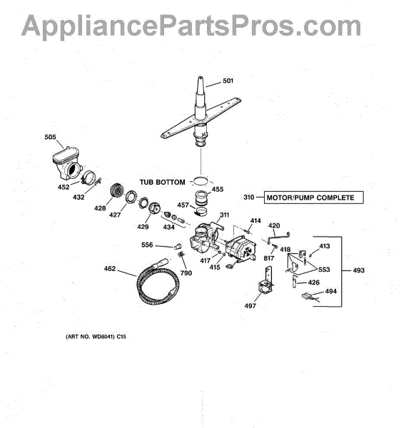 For single drain outlet models only. For dual outlet port models you must order the complete pump and motor WD26X10013.