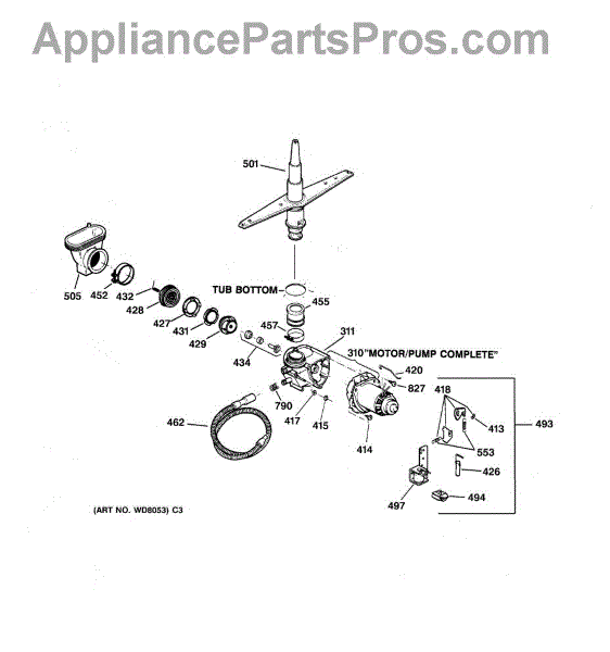 For single drain outlet models only. For dual outlet port models you must order the complete pump and motor WD26X10013.