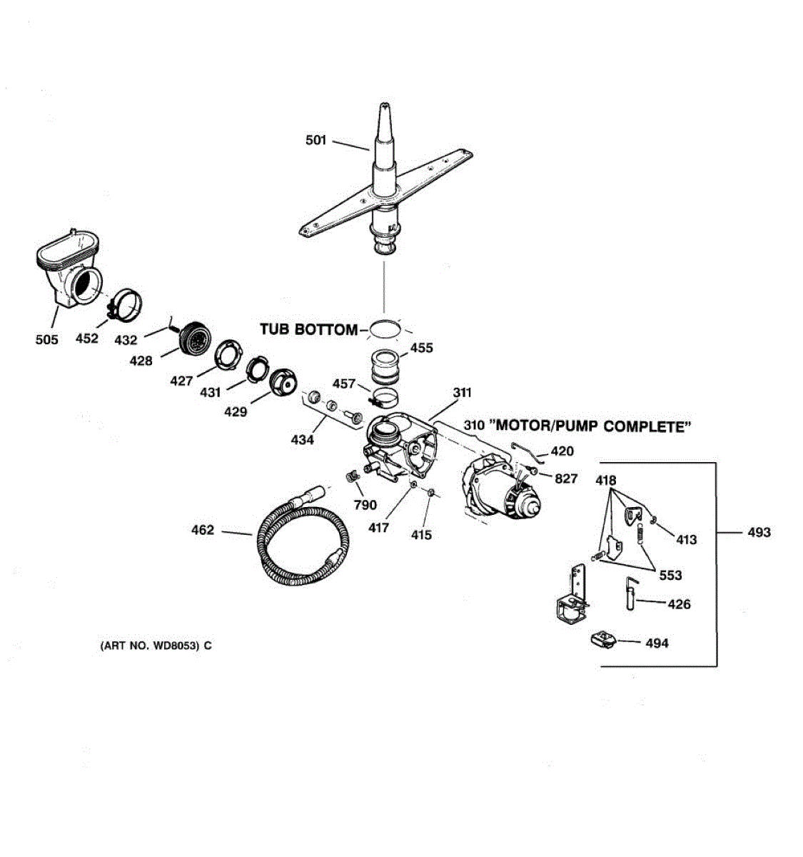 For single drain outlet models only. For dual outlet port models you must order the complete pump and motor WD26X10013.