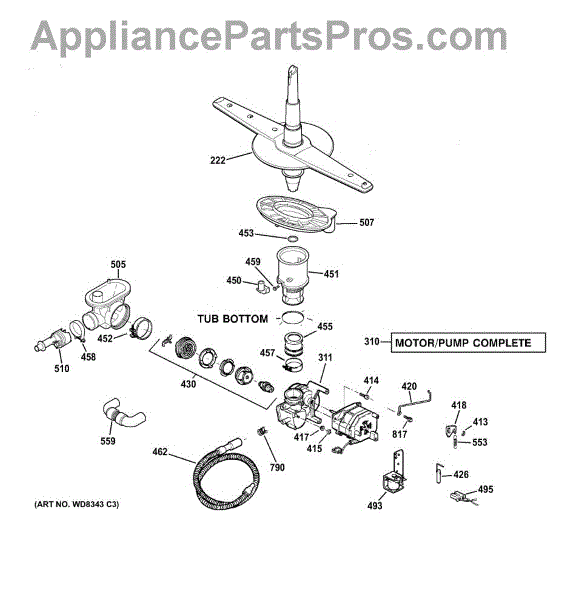 For single drain outlet models only. For dual outlet port models you must order the complete pump and motor WD26X10013.