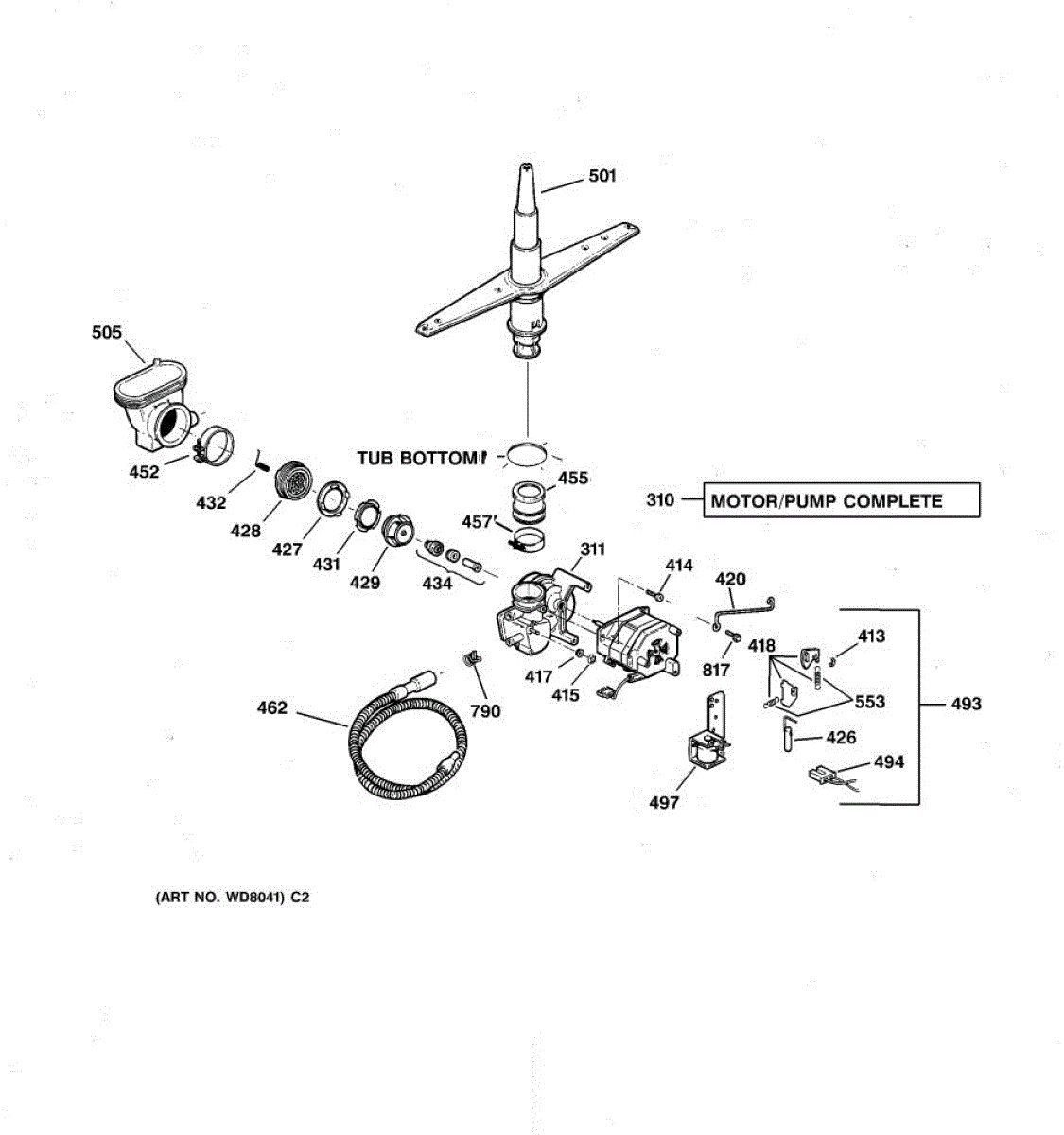 For single drain outlet models only. For dual outlet port models you must order the complete pump and motor WD26X10013.
