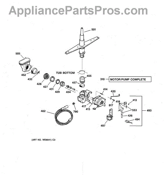 This kit is used to repair a leaking pump on GE made dishwashers. For a complete pump/motor assembly get WD26X10013.