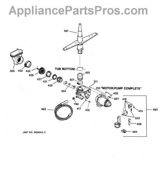 For single drain outlet models only. For dual outlet port models you must order the complete pump and motor WD26X10013.