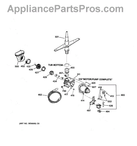 For single drain outlet models only. For dual outlet port models you must order the complete pump and motor WD26X10013.