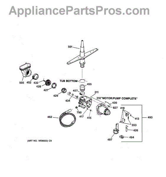 For single drain outlet models only. For dual outlet port models you must order the complete pump and motor WD26X10013.