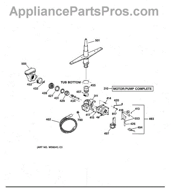 Parts for Ge GSD3430Z04WW: 03 - Motor-Pump Mechanism Parts
