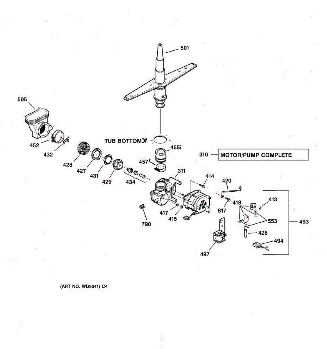 For single drain outlet models only. For dual outlet port models you must order the complete pump and motor WD26X10013.