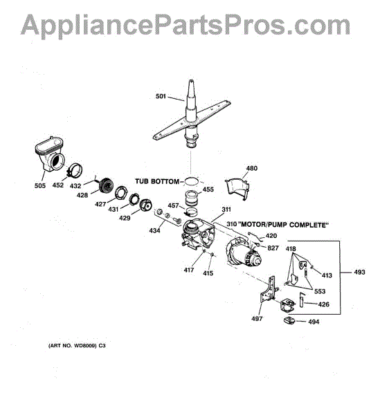 Parts for Ge GSD3830Z02WW: 03 - Motor-Pump Mechanism Parts