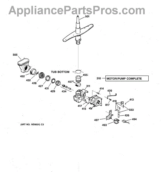 This kit is used to repair a leaking pump on GE made dishwashers. For a complete pump/motor assembly get WD26X10013.