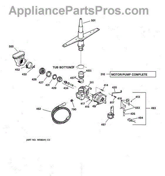 For single drain outlet models only. For dual outlet port models you must order the complete pump and motor WD26X10013.
