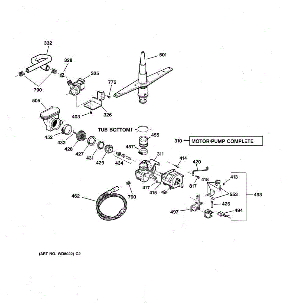 Parts for Ge GSD4320Y73BB: 03 - Motor-Pump Mechanism Parts