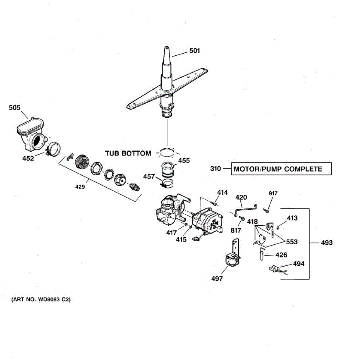The Complete GE Pump and Motor Assembly is an OEM replacement part for GE dishwashers. This assembly is integral to the dishwasher’s functionality, as it combines both the pump and motor components that work together to circulate water during the wash and rinse cycles. The pump forces water through the spray arms, while the motor drives this process, ensuring thorough cleaning of the dishes.