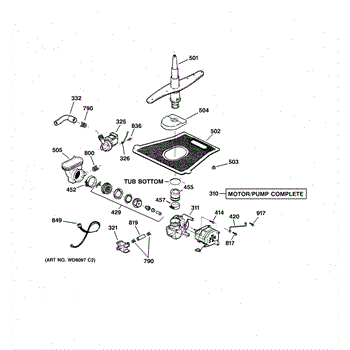 Over time, the pump and motor assembly can wear out due to constant use and exposure to water and detergents. Additionally, debris or hard water buildup can clog the pump, causing strain on the motor and leading to failures. Electrical issues or damage from power surges can also impair the assembly's performance.