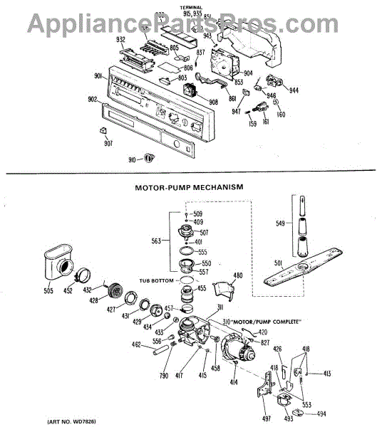 This kit is used to repair a leaking pump on GE made dishwashers. For a complete pump/motor assembly get WD26X10013.