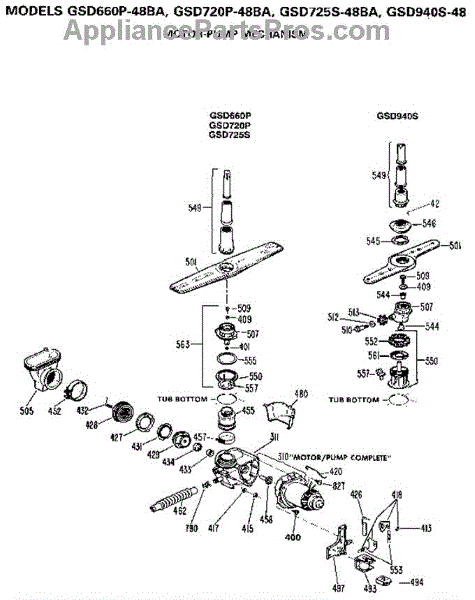 Parts for Ge GSD720P-48BA: Motor-Pump Mechanism Parts