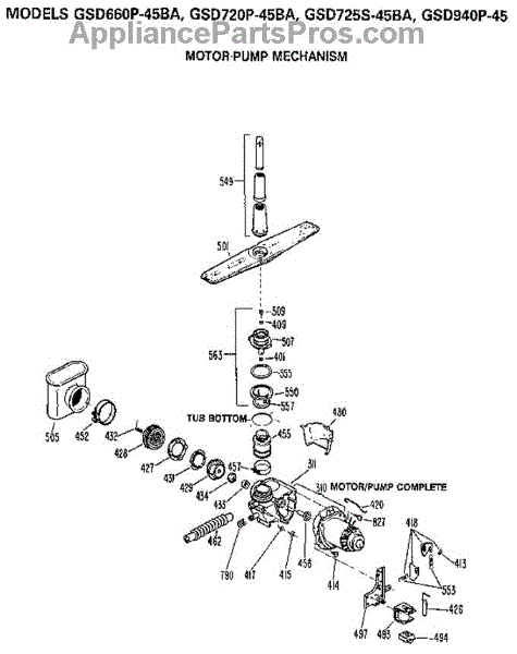 Parts for Ge GSD940P-45: Motor-Pump Mechanism Parts