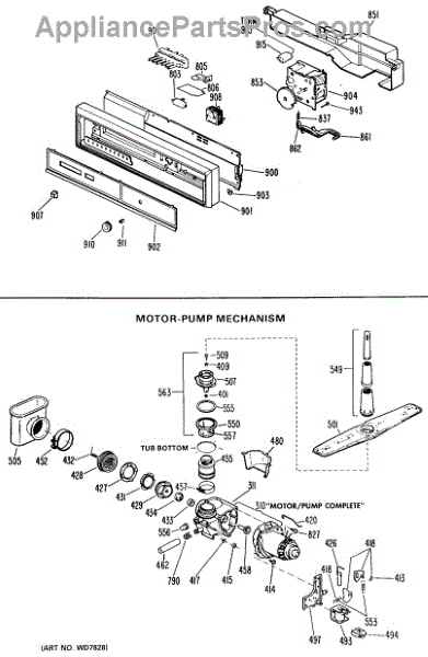 This kit is used to repair a leaking pump on GE made dishwashers. For a complete pump/motor assembly get WD26X10013.