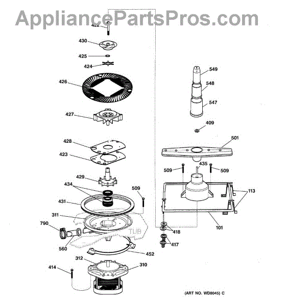 This pump housing channels washer drain water from the tub to the drain pump and helps seal the pump assembly to prevent leaks. Replacing a cracked or worn housing restores proper drainage and helps stop leaks under the washer. What it does